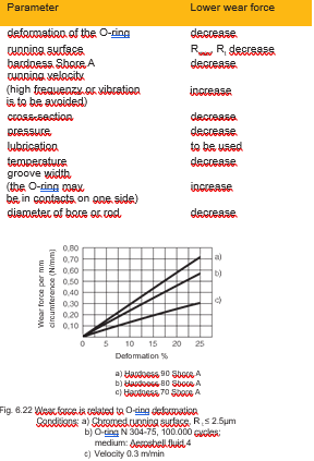 Friction causes wear. However, friction can be anticipated and taken into consideration in the design stage. The wear rate how- ever is difficult to predict but directly governs the lifetime of an O-ring and the frequency of maintenance.